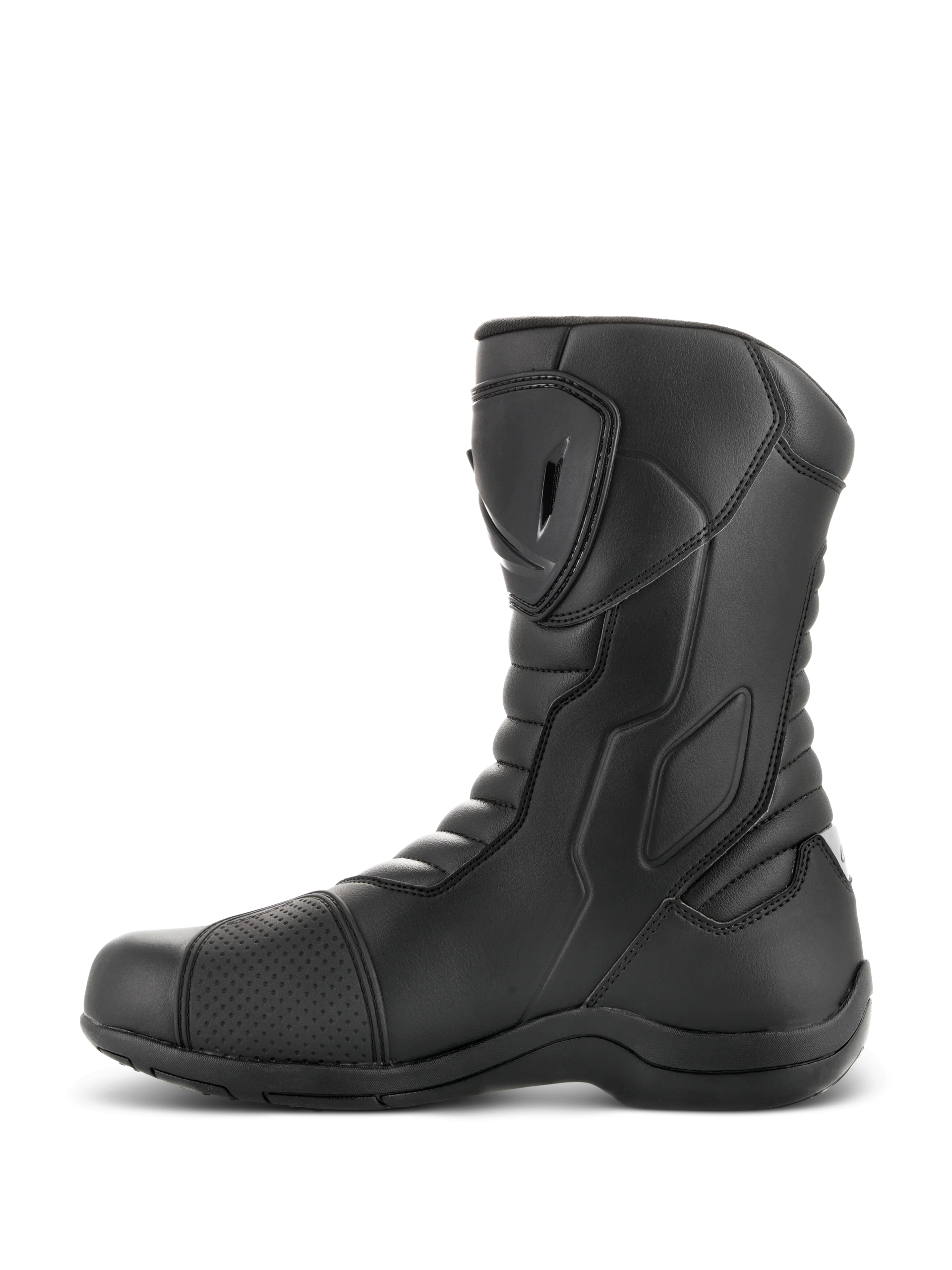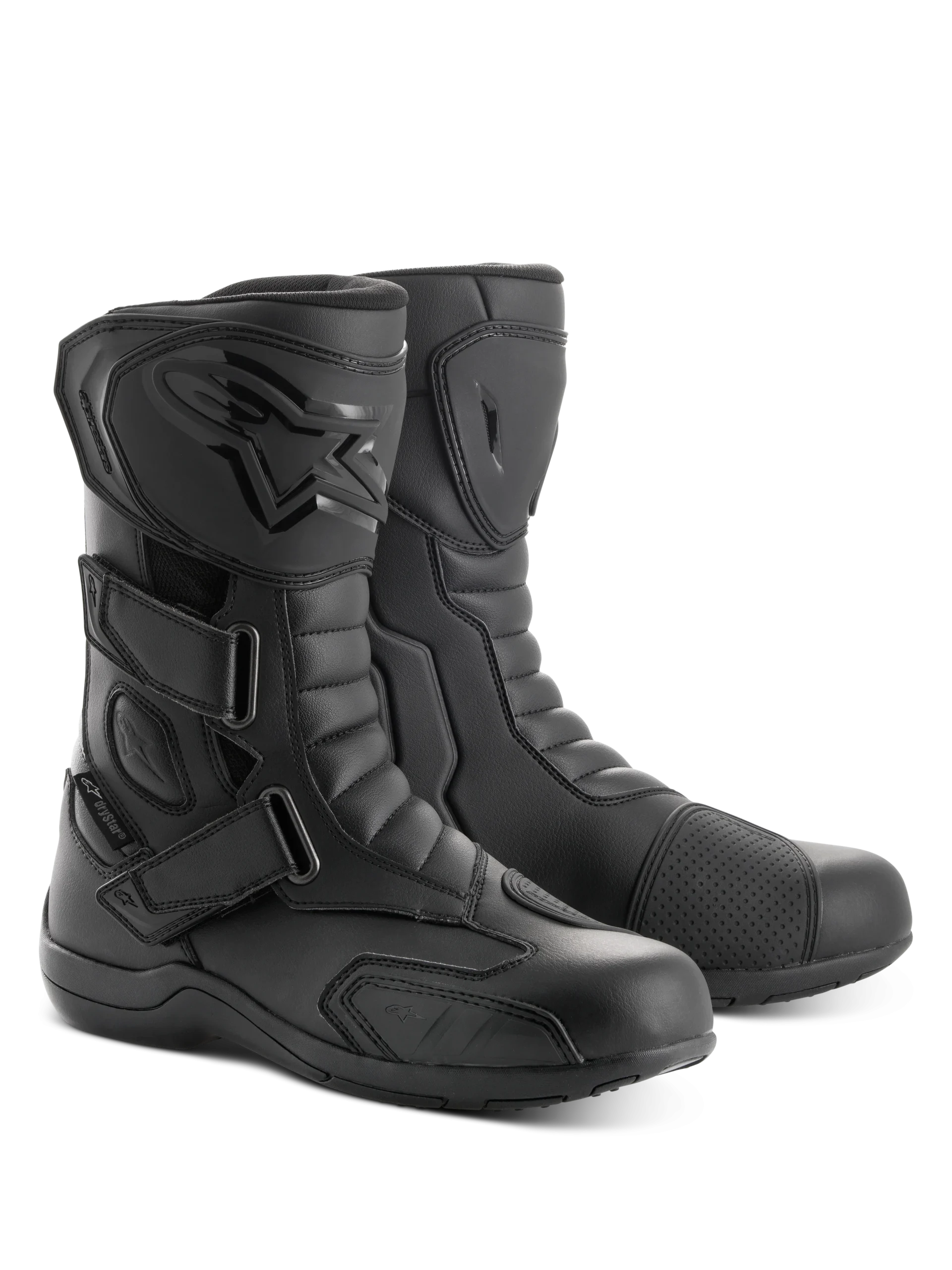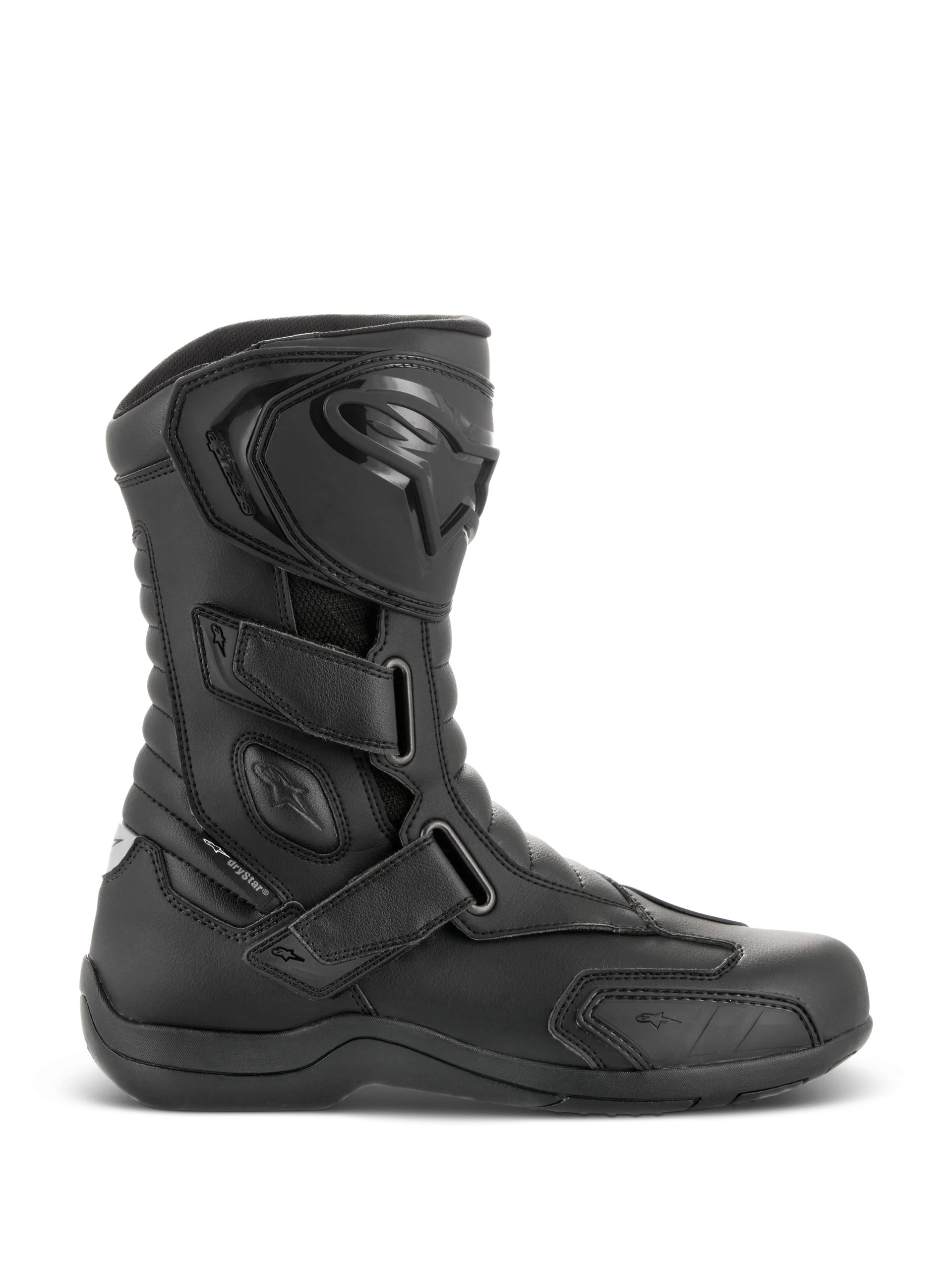Des bottes durables de tourisme à la pointe de la technologie, avec une protection de haute technicité à l’intérieur et à l’extérieur, les bottes Radon DRYSTAR¨ offrent un profil ergonomique sur l’avant-pied profilé pour améliorer les performances sur les repose-pieds, tandis que la membrane DRYSTAR¨ procure une étanchéité à 100 %. • Tige principale en microfibre pour une plus longue durabilité et un confort durable. • Incorpore un embout ergonomique au niveau des orteils pour améliorer la compatibilité avec les commandes de la moto et pour le profil, l’ajustement et le confort supérieur d’un large éventail de pieds. • Le contrefort intérieur aux talons et les embouts aux orteils augmentent l’intégrité structurelle. • Plaque protège-tibia et attèle en TPU offrent support et résistance aux chocs. • Nouveau design de la semelle TPR sur l’orteil latéral pour davantage de flexibilité et de protection contre l’abrasion. • Membrane Alpinestars DRYSTAR¨ imperméable et respirante située entre la tige et la doublure pour une performance démontrée dans des conditions météorologiques difficiles. • Trois sangles Velcro latérales ajustables pour garantir une fermeture sre et un réglage personnalisé. Sangles avec languettes en TPR pour une fermeture facile et durable. • Embout intérieur au niveau des orteils et contrefort aux talons situés sous la tige pour une plus grande durabilité, une meilleure sensation tactile et performance. • Doublure textile technique confortable et durable autour de la cheville. • Protections de cheville à double densité rembourrées de mousse pour protéger les deux ctés de la cheville. • Semelle intermédiaire modulaire à mémoire de forme du pied avec renfort cambrion intégré. • Semelle Alpinestars formée d’un mélange exclusif de caoutchouc vulcanisé pour l’adhérence et l’étanchéité. • Technologie innovante laminée d’allègement, utilisée sur la plaque de protection du tibia pour alléger son poids, et pour une protection additionnelle contre les chocs. • Lit plantaire anatomique amovible en mousse EVA et textile pour soutenir les pieds et le confort. • Inserts réfléchissants arrière et latéraux pour améliorer la visibilité du conducteur dans de mauvaises conditions d’éclairage. • RADON DRYSTAR¨ est homologué CE (EN 13634:2010).