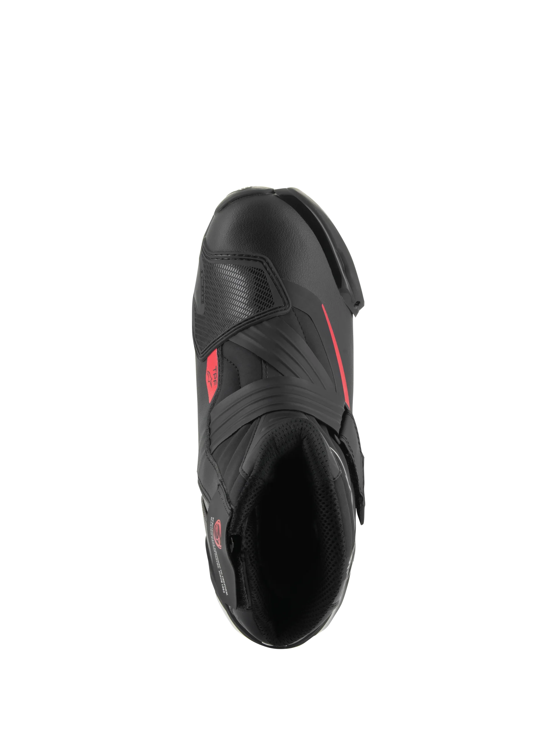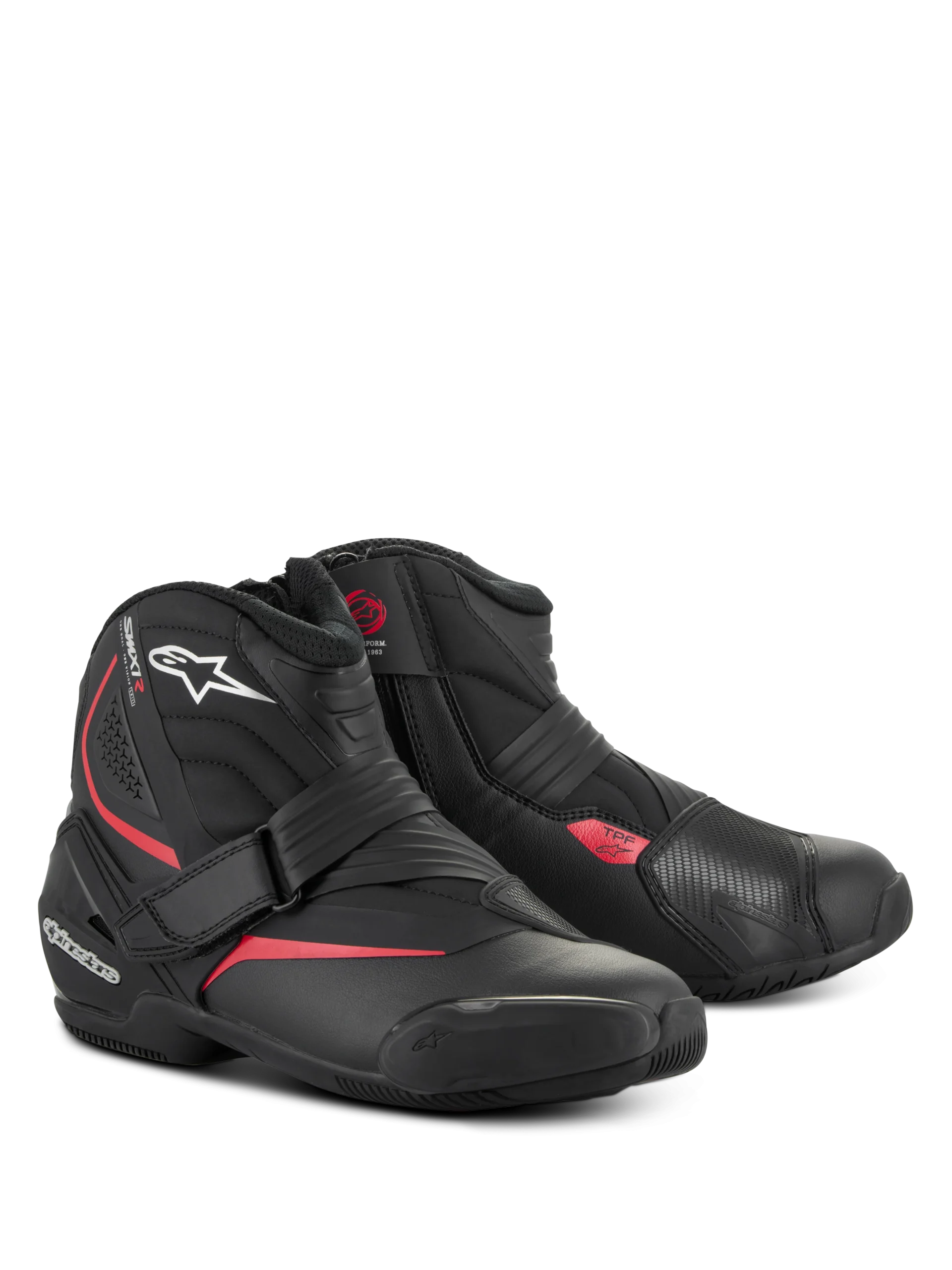 Des bottines élégantes, coupe basse, pour une conduite performante, les chaussures de conduite SMX-1 R v2 intègrent une foule d’innovations tech.niques pour des niveaux de confort, une coupe et une durabilité bien meilleures. Construites dans une empeigne en microfibre légère et résistante a l’abrasion, renforcées par des protections en TPU positionnées stratégiquement, les chaussures SMX-1 R v2 avec leurs semelles en caoutchoucs mixtes aux motifs très agrippants offrent une excellente préhension sur la moto et le terrain tandis que les zones a soufflet plus souples permettent le main.tien et le contr™le quelle que soit la position de conduite. • Empeigne construite dans une microfibre technique pour le confort, la durabilité et une excellente résistance a l’abrasion. • Un système innovant de contrefort au talon avec une sangle de fermeture pour un meilleur ajustement et support, et une structure intègre. • L’arrière du contrefort du talon est construit dans un insert en TPE souple sans couture qui avec la zone flexible arrière procurent une plus grande liberté au mouvement a la cheville et davantage de confort pour les commandes au pied de la moto. • Les soufflets arrière souples laissent une marge de manÏuvre et rentrer l’air pour une bonne ventilation et circulation de l’air. • Nouveaux protège-sélecteurs amovibles en TPU pour davantage de durabilité sur les zones d’impact. • Forme ergonomique et rationnelle sur l’avant-pied qui s’adapte a la plupart des profils de pieds pour un plus grand confort. • Sangle de fermeture anatomique évolutive qui suit la forme naturelle du cou-de-pied du pilote. • Système de fermeture Velcro¨ a l’avant pour un ajustement rapide et sécurisé sur la zone du cou-de-pied et une excellente flexibilité. • Les sangles en TPR disposant d’un tirant elles sont plus faciles a utiliser. • Les fils de fibres aramide garantissent longévité, finesse et légèreté au nouveau système de fermeture. • La semelle en caoutchouc exclusif d’Alpinestars avec ses motifs ultra adhérents procure plus de confort et d’adhérence, le drainage de l’eau et la durabilité. • La semelle intègre un cadre de protection transversal (Transversal Protection Frame) contre les éventuelles contraintes transversales. • Les zones flexibles du cou-de-pied et du talon d’Achille sont construites dans une microfibre légère pour des niveaux optimisés de durabilité, de confort et de manÏuvrabilité sur la moto et hors de la moto. • Motifs en chevrons thermosoudés pour contr™ler le fléchissement et la souplesse des chaussures ; sur le cou-de-pied, au centre, et a l’arrière. • Fermeture a glissière avec curseur inversé pour pouvoir enfiler et retirer facilement les chaussures. • Protection des chevilles a double densité des deux c™tés sous la tige, offrant une protection performante et une résistance a l’abrasion dans les zones exposées. • Sliders a l’avant-pied intégrés moulés par bi-injection remplaables, avec un nouveau concept de fixation facile a visser pour un remplacement plus simple et rapide. • Contrefort du talon externe, très élastique en TPU, coussinet sur la cheville latérale et protège-sélecteur pour une meilleure protection contre les chocs, et la durabilité. • Embout intérieur au niveau des orteils situé sous la tige pour une plus grande durabilité, une meilleure sensation tactile et performance. • La semelle plantaire anatomique peut être retirée, en mousse EVA et en Lycra¨ elle assure le confort et le maintien. • Doublure intérieure en tissu mesh pour un confort rafra”chissant et l’évacuation de l’humidité. • Le marquage CE, conformément a la législation européenne, répond aux obligations de commercialisation de ce produit. • Le produit est conforme a la norme suivante : • Homologation CE EN13634:2017.