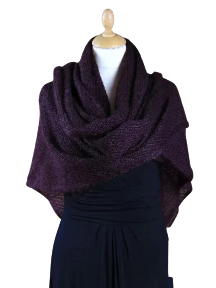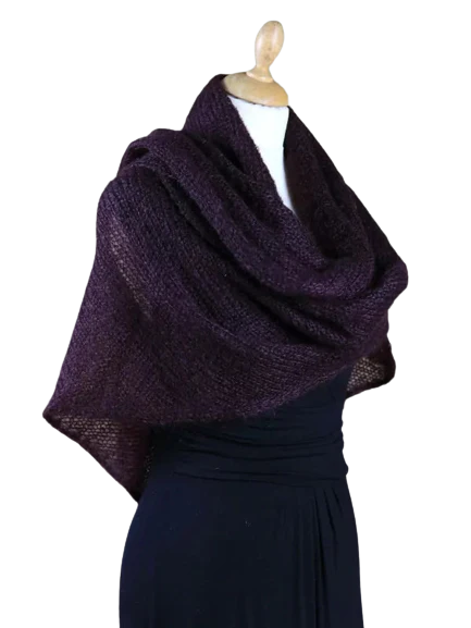 EMERO – Châle Femme en Mohair et Soie – Aubergine – Origine : Hérault (France)
