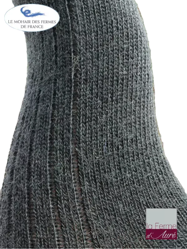 Fabriquées en France par une entreprise labellisée, ces chaussettes sont tricotées avec 80 % du mohair le plus doux de notre ferme pour vous offrir une qualité supérieure. Le remaillage traditionnel assure une grande résistance et le renfort au talon et à la pointe garantit une durée de vie de 3 à 5 ans. 🌟