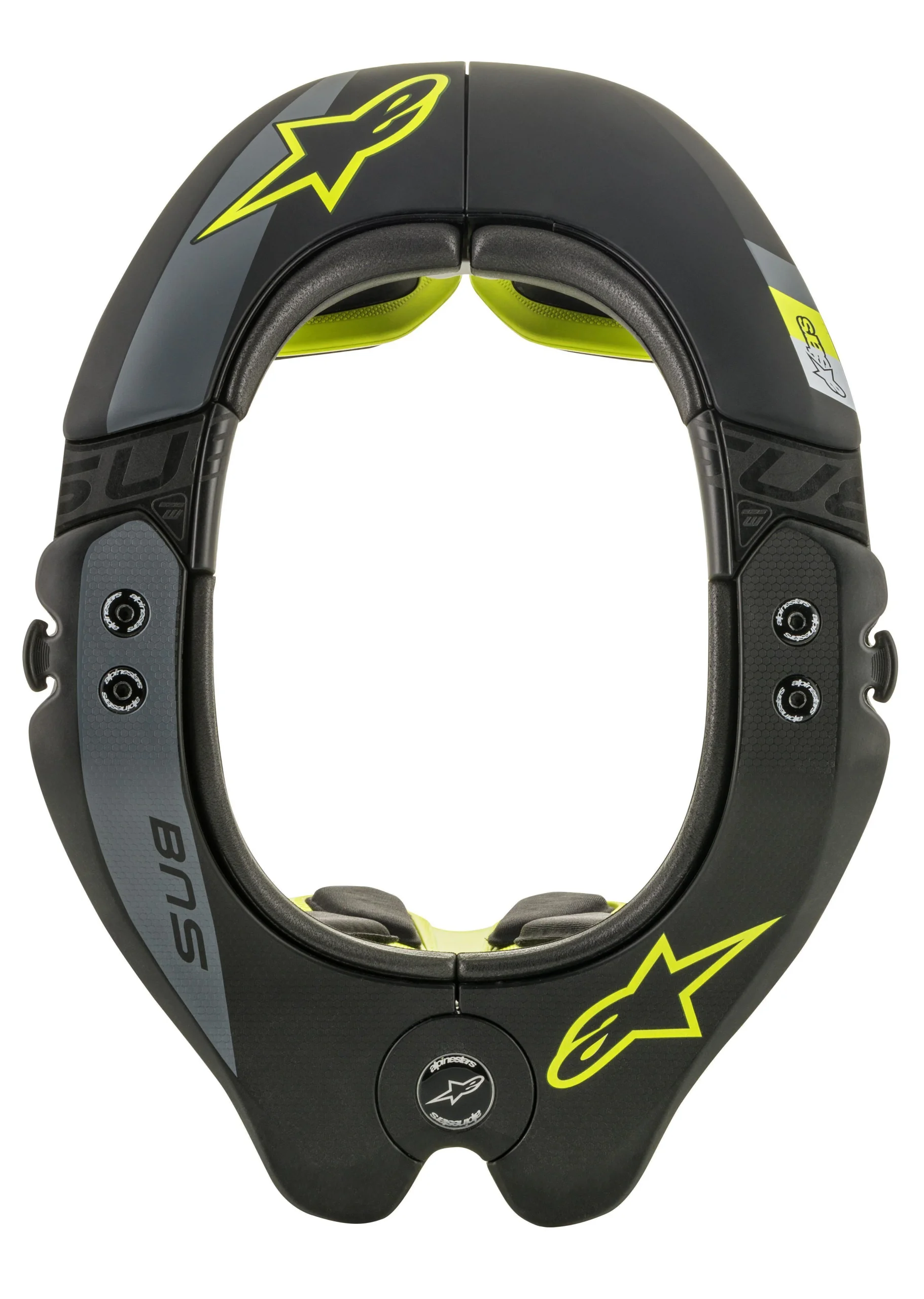 Le Bionic Neck Support Tech 2 est fabriqué à partir d’un composé de polymère de carbone avancé et haute performance et est conçu pour aider à prévenir les blessures en cas de chute en dissipant et déviant les forces d’impact loin du cou et de la colonne vertébrale. Le BNS fonctionne lorsque le casque du pilote entre en contact avec le cadre au moment de la chute, offrant ainsi une surface propre et solide qui canalise instantanément l’énergie d’impact compressive et nocive loin du cou et sur le BNS. Doté de la stabilisation arrière exclusive et révolutionnaire d’Alpinestars pour un soulagement progressif des forces (PFR), le BNS Tech 2 est conçu pour être utilisé en motocross et en tout-terrain et offre un ajustement stable et hautement personnalisable tout en intégrant des fonctionnalités innovantes telles qu’un nouveau système de verrouillage à libération rapide.
